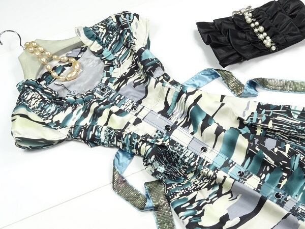 高級感のある風合いが大人の上品さを醸し出してくれるワンピ-スです。美しいプリント柄と襟のフリルが可愛いくリボンベルトがポイントのシルクワンピ。立体的な縫製でスタイル良く着こなせます。裏地付。サイドファスナ-有。ベルト付。