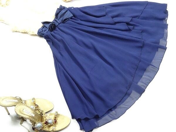 トップスの薔薇モチーフが愛らしいミニドレス。トップスのフロント部分に細かな作りの薔薇のモチーフがふんだんにあしらわれ豪華な印象になっています。ウエストには大きなサテンのリボン。スカートはしなやかなシフォンで、足の動きの合わせて綺麗になびき、シルエットを美しくみせてくれます。ちょっとした晴れの場所ではミニドレスとして、また普段はおしゃれなワンピースとして、デートやお呼ばれ、ライブなどに活躍してくれる一着です。左脇ファスナー。裏地あり。