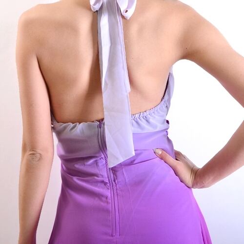 グラデ-ションにキラキラのビジュ-がとても豪華で華やかです。脚を綺麗に見せてくれるテ-ルカットが女性度UP!!パ-ティ-にいかがでしょうか。裏地あり。パット有。