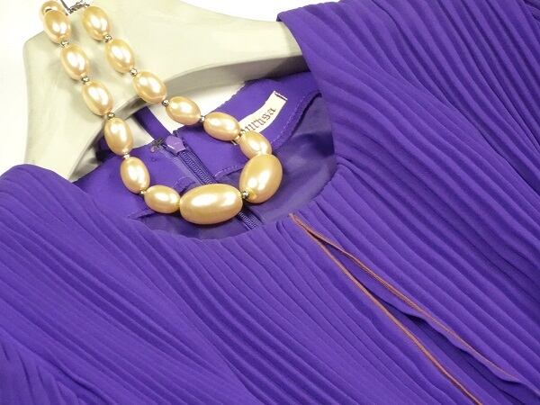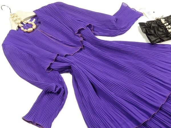 全体細かなプリ-ツが施され、三重になった総プリ-ツふんわりワンピ-スです。動く度に揺れ女性度UP間違いなしです。後ファスナ-有。裏地有。日本製。
