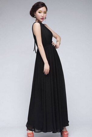 セクシ-リボン付きのマキシ丈ワンピースです。。スカート部分の裾は、しなやかな生地をたっぷり使っているので、動くたびに美しく揺れ、足元を美しく見せてくれます。女性らしさを演出してくれるおちついた印象を与えるお洋服です。裏地付。