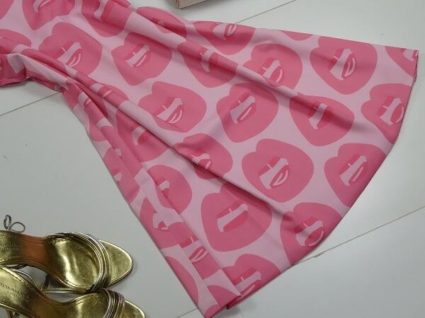 濃淡のピンクでPOPなプリントは、海外セレブの私服ライフでとてもプリティ-です。スカ-フ地のようにツルっと肌触りの滑らかさがとても爽やかです。背中ファスナー。裏地有。