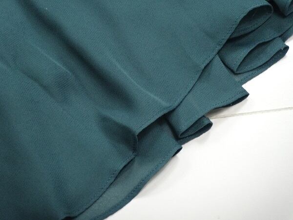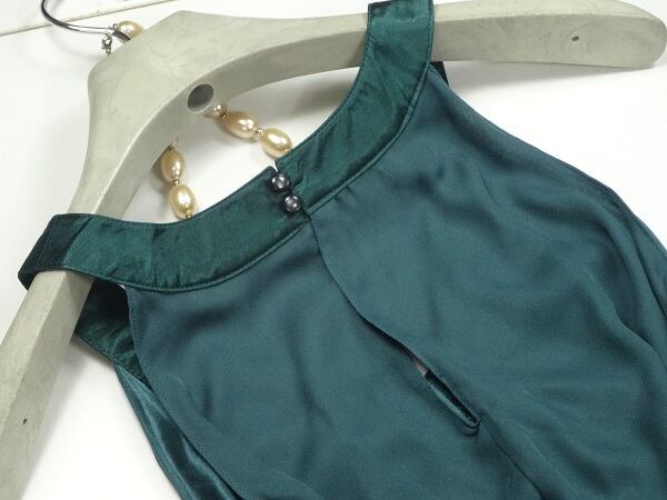 エレガントな美しいフレア-ワンピースです。ウエストにベルトをするとまた異なった雰囲気になります。上品でフェミニンな一着です。裏地あり。黒の紐ベルト付。