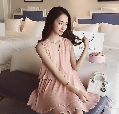 トップにはたくさんの花模様の刺繍がほどこされ、ウエストから下は約1cm幅の細かなプリーツ仕様になっている、清楚で上品な印象を与えてくれる半袖ワンピースです。右脇ファスナー。裏地付。