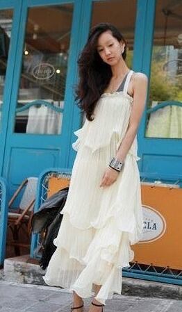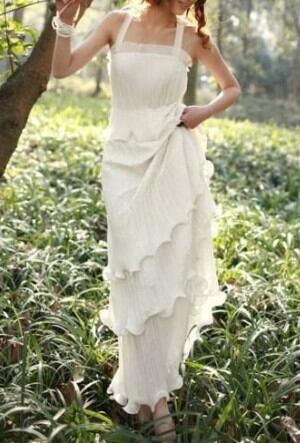 ピュアな段プリーツ妖精のようなワンピースです。たっぷりと生地をとった繊細な段プリーツは、ゴージャス感もあり、また動くたびにひらひらと舞う森の中の妖精のようでもあります。大変可愛いデザインです。裏地付。