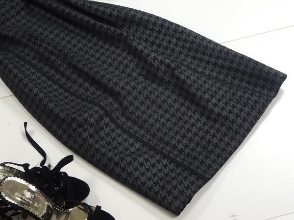グレイッシュベ-スのワンピ-スに千鳥柄のデザインがどんなシ-ンでも魅力を発揮してくれます。しっかりとした生地感です。背中ファスナ-有。裏地有。