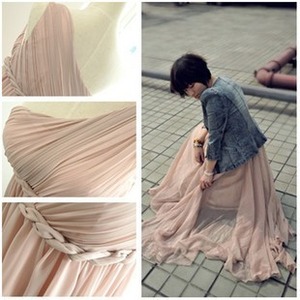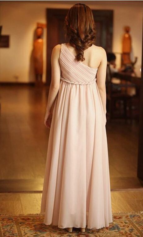 細やかなプリーツがトップスに施され、ウエストの三つ編みで絞られた生地はスカートの裾に向けてゆったりと広がる、美しいシルエットのマキシ丈ドレスワンピースです。しなやかで柔らかなピンクが、着る人の品の良さと可愛らしさを表現してくれています。左脇ファスナー。裏地あり。