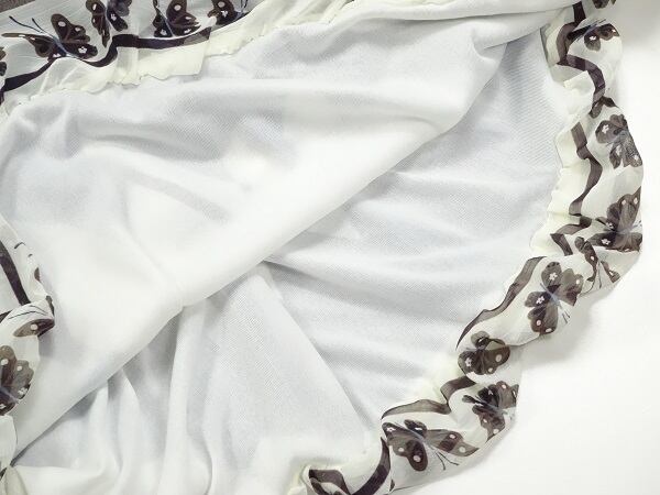 華やかかつ大き目のパピヨン柄が素敵でウエストは、サテン切替しのとてもキュ-トなバル-ンワンピ-スです胸元のコサ-ジュがワンポイントになります。サイドファスナー有。裏地付。コサ-ジュ付き。