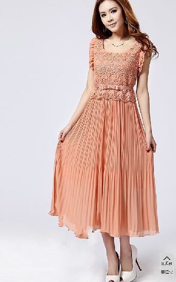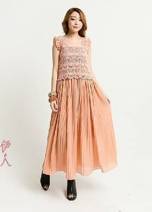 トップスはレ-スでスカ-トは柔らかい素材のプリ-ツにより女性らしさとエレガントさを同時に演出した一品です。裏地付。