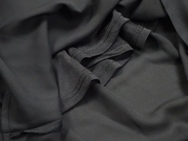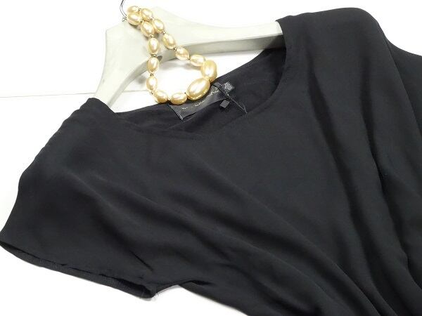 アシンメトリ-デザインのしなやかチュニックワンピ-スです。左サイドにギャザ-を寄せた袖からつながるバタフライのような片側サイドフリルがとても素敵で女性度UPです。裏地付。
