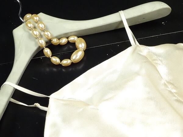 ふんわりとした生地感で着心地がとても良いです。バラのコサ-ジュがオシャレでワンポイントです。裏地あり。