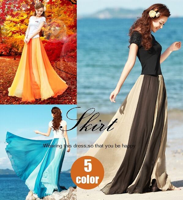 シンプルなシフォンのロングスカ-トです。歩く度にふんわりと揺れる裾が視線を集めます。!リゾ-トコ-デに最適!裏地付。