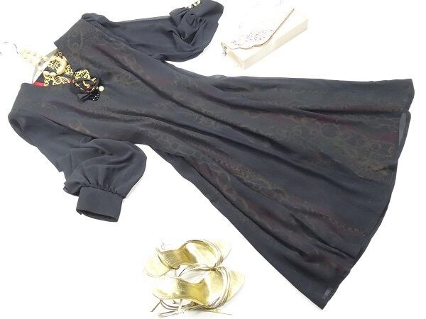 黒とアニマル柄の柔らか素材の重ね着ワンピです。とてもエレガントで女性度UPです。日本製で縫製もしっかりしています。裏地あり。