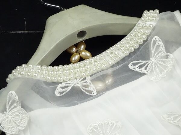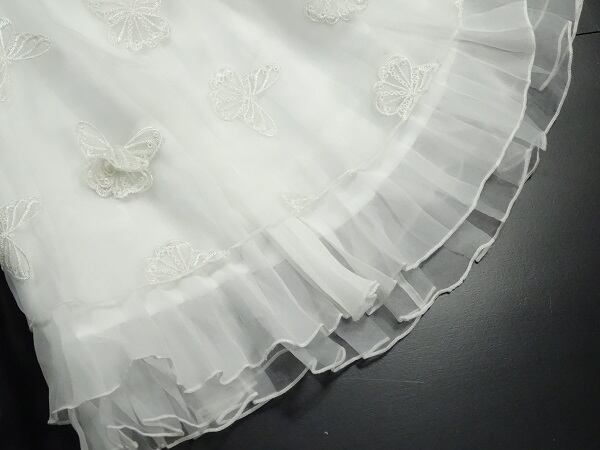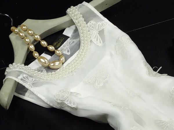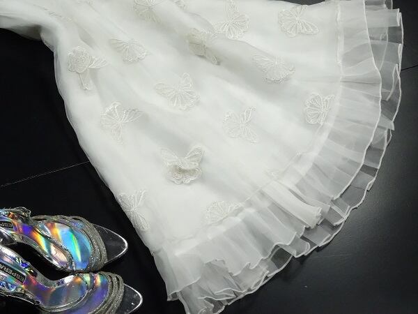 立体的な造形美、ひらひらと舞う蝶の優雅さを感じさせてくれる女優モ-ドのワンピ-スです。オ-ガンジ-の透け感がもつ高級感が満足度のある一品です。裏地あり。