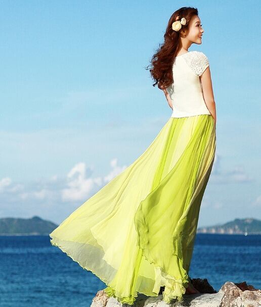 シンプルなシフォンのロングスカ-トです。歩く度にふんわりと揺れる裾が視線を集めます。!リゾ-トコ-デに最適!裏地付。