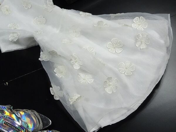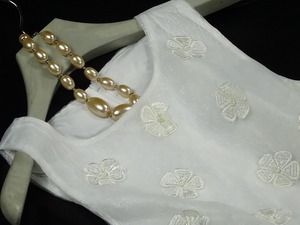 胸元から裾までの立体花柄刺繍がとてもゴ-ジャスで可愛いワンピ-スです。いろいろな所で活躍してくれるでしょう。背中ファスナー有。裏地有。