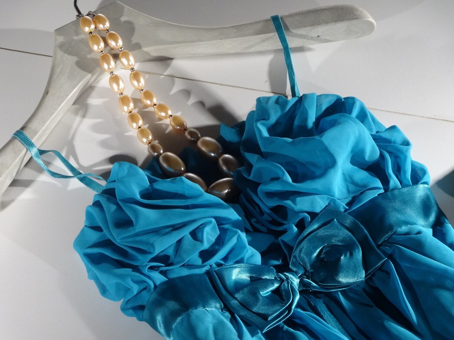 ボリュームのあるフリルがたっぷりと使用された華やかなドレスワンピース。胸元にフリルが重なり、豪華な印象を与えています。裏地あり。