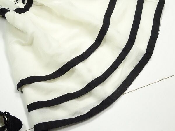 透明感のある素材使いと、贅沢なボタニカル刺繍が女性らしいしぐさを優雅に見せてくれる贅沢なお洋服です。ふわふわとした裾にボ-ダ-が施され清楚な魅力をアップしてくれます。見頃部分裏地あり。ファスナ-有。