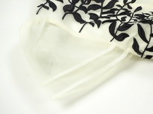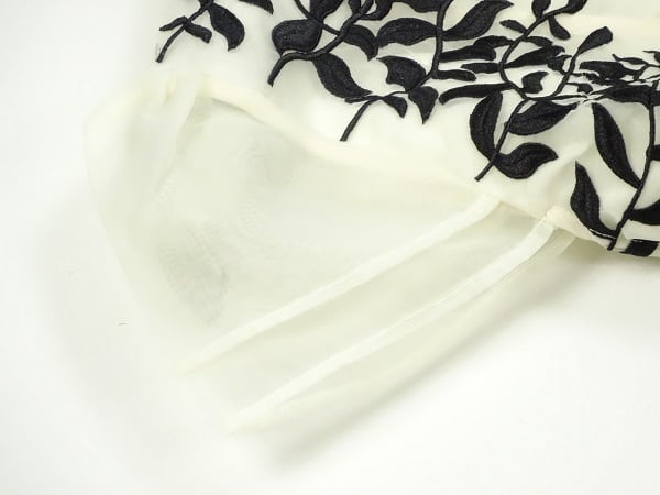 透明感のある素材使いと、贅沢なボタニカル刺繍が女性らしいしぐさを優雅に見せてくれる素敵なワンピ-スです。上品な透け感で涼しげな印象!ふわふわとした裾にボ-ダ-が施され清楚な魅力をアップしてくれます。ファスナ-有。身頃部分裏地あり。
