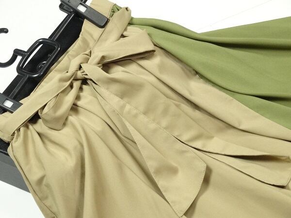 アンシンメトリーフレア-スカ-トです。ウエスト部分は同布ベルト(取り外し可)がついていて、裾はランダムカットのアンシンメトリータイプで揺れ感がとても良いです。フォーマル・カジュアルさまざまなシーンに活躍してくれます。ファスナ-なし。裏地あり。
