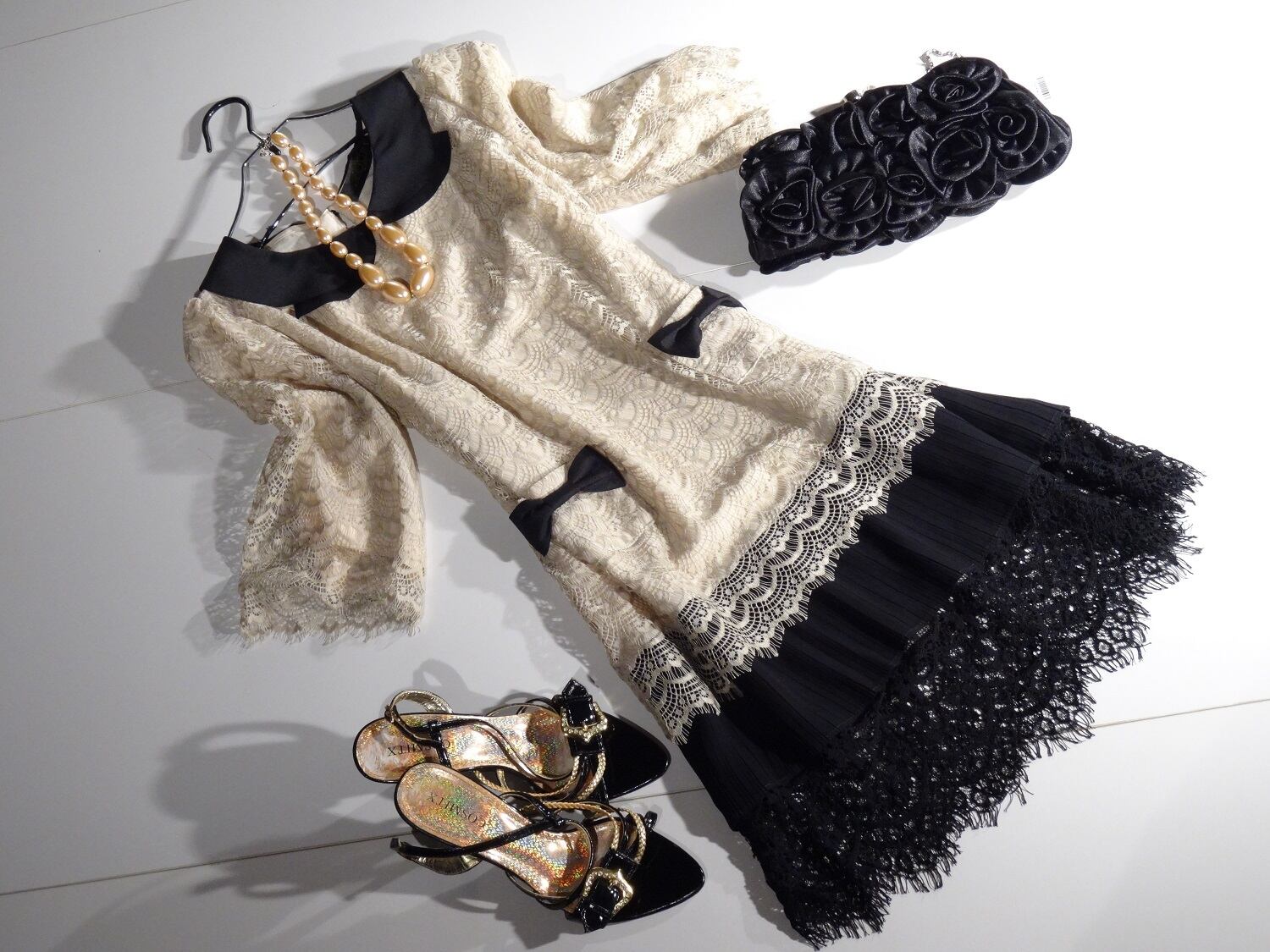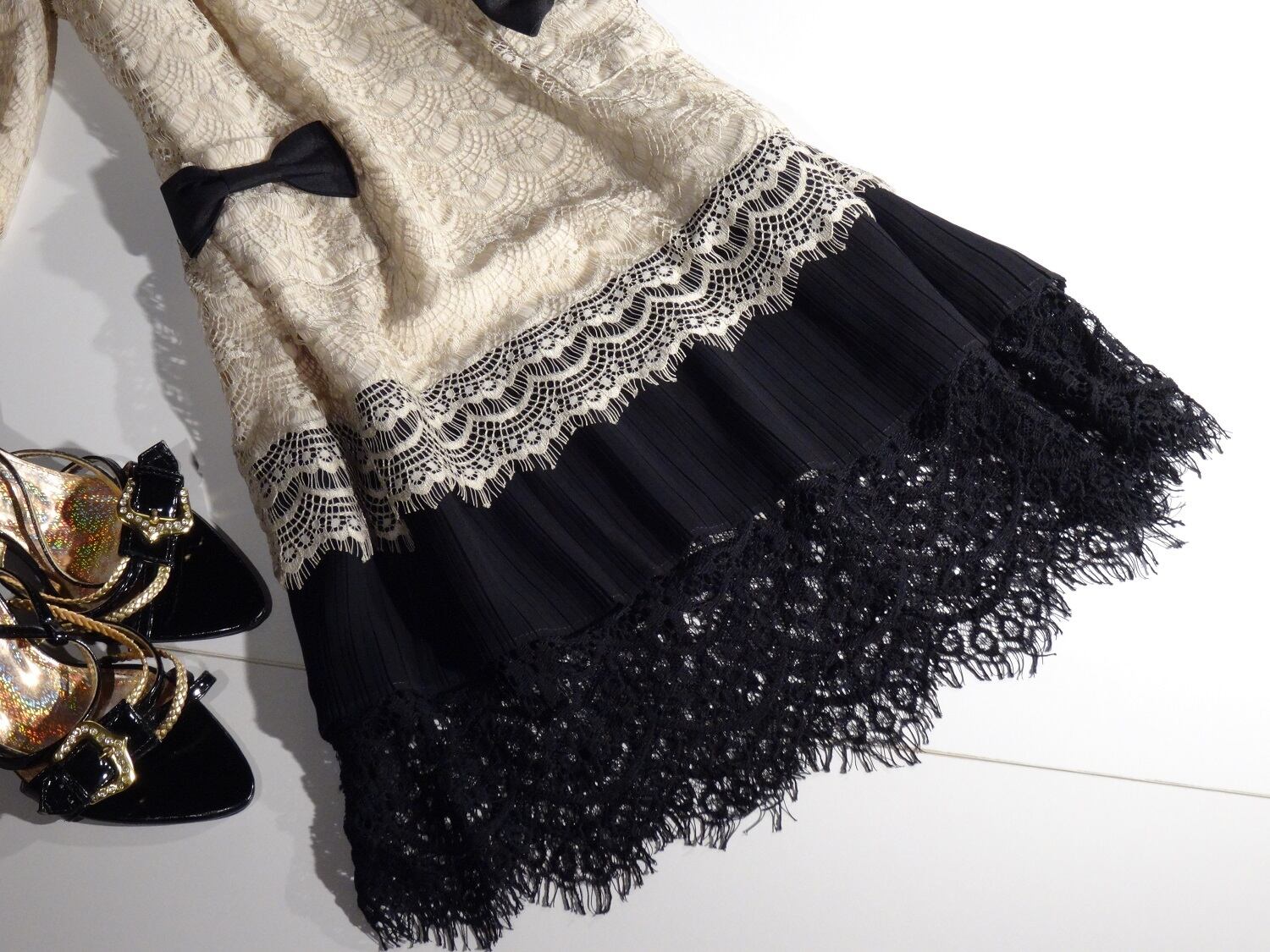 レ-ス・リボン・フリルとフェミニンな要素を一身に集めたエレガントな魅力溢れるレ-ス×フリルのAラインワンピ-スです。歩くたびにこの上もなくたおやかで優しい気品を振り撒きます。華やぐ着映え力を発揮してくれます。後ろにボタン一つ有。裏地あり。