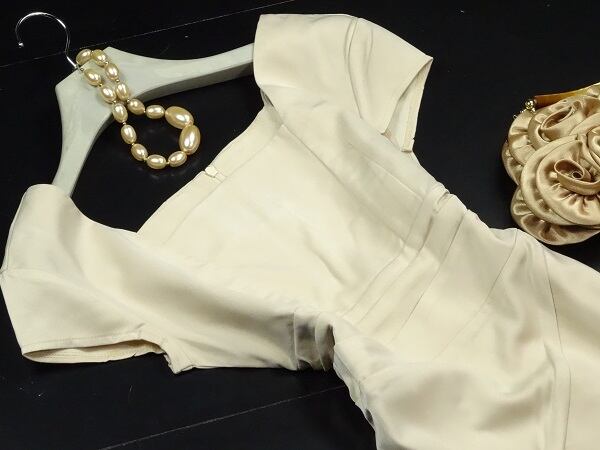 シンプルデザインでとてもモダンで高級感も抜群のワンピ-スです。どんなシ-ンでも大活躍すること間違いなしです。背中ファスナ-有。裏地なし。