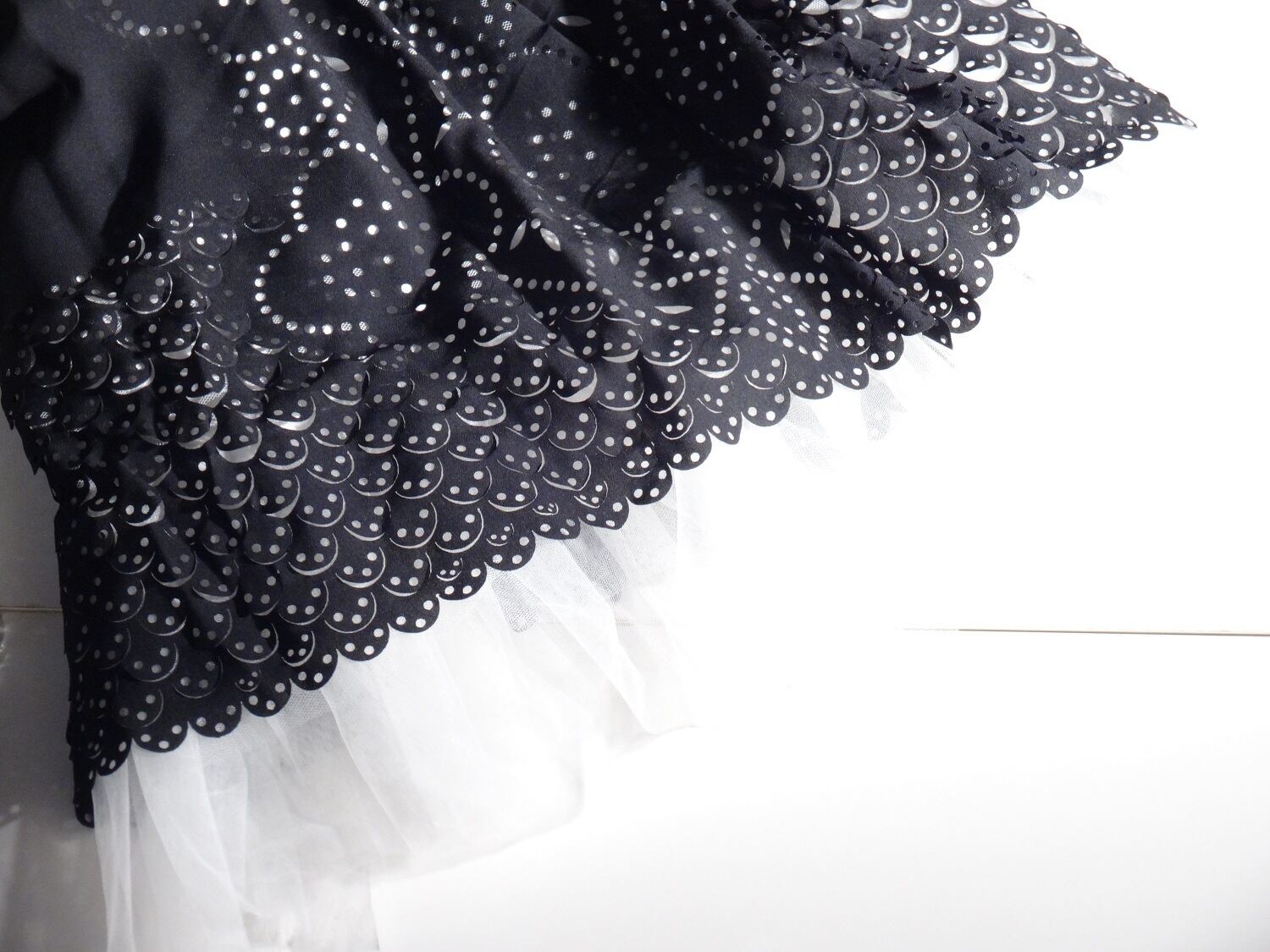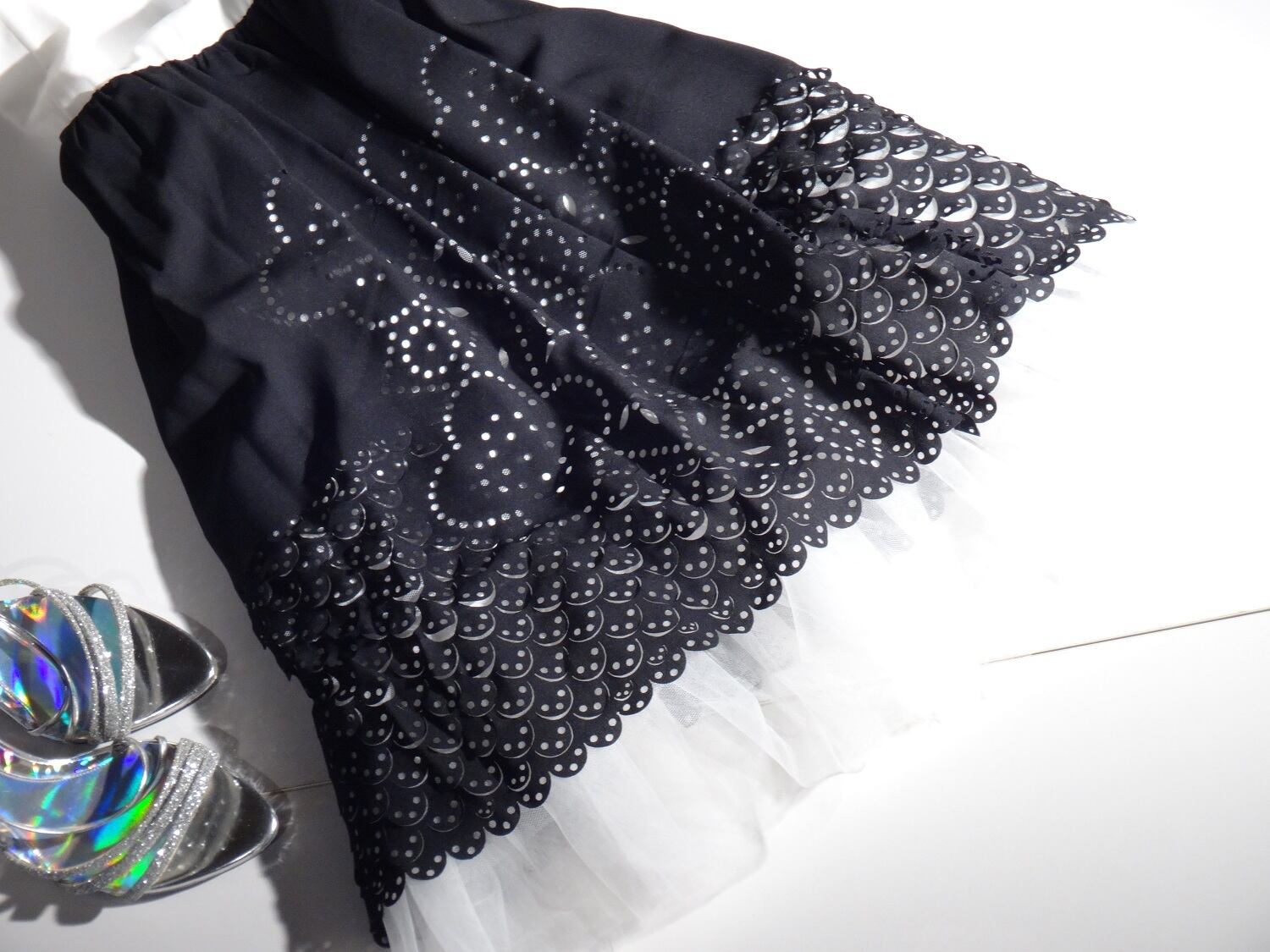透明感のある素材使いと、繊細なカットワ-ク刺繍がとてもオシャレで、しぐさを優雅に見せてくれる贅沢なお洋服です。上品さが際立っています。バニエ有。左脇ファスナ-有。裏地あり。