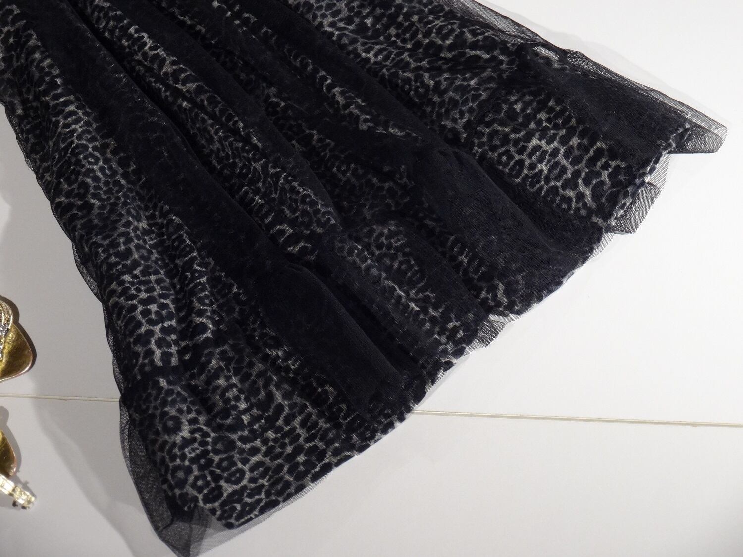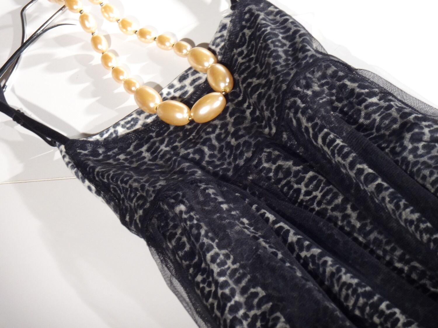 黒のメッシュ地にレオパード柄があしらわれたキャミタイプのワンピース。キュートなシルエットに、黒のメッシュ地が、可愛らしさの中にシックな大人のテイストをプラスしています。身長156~160cm位の方に最適。肩紐調整可。