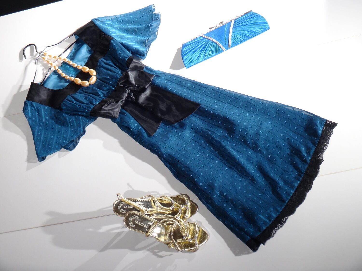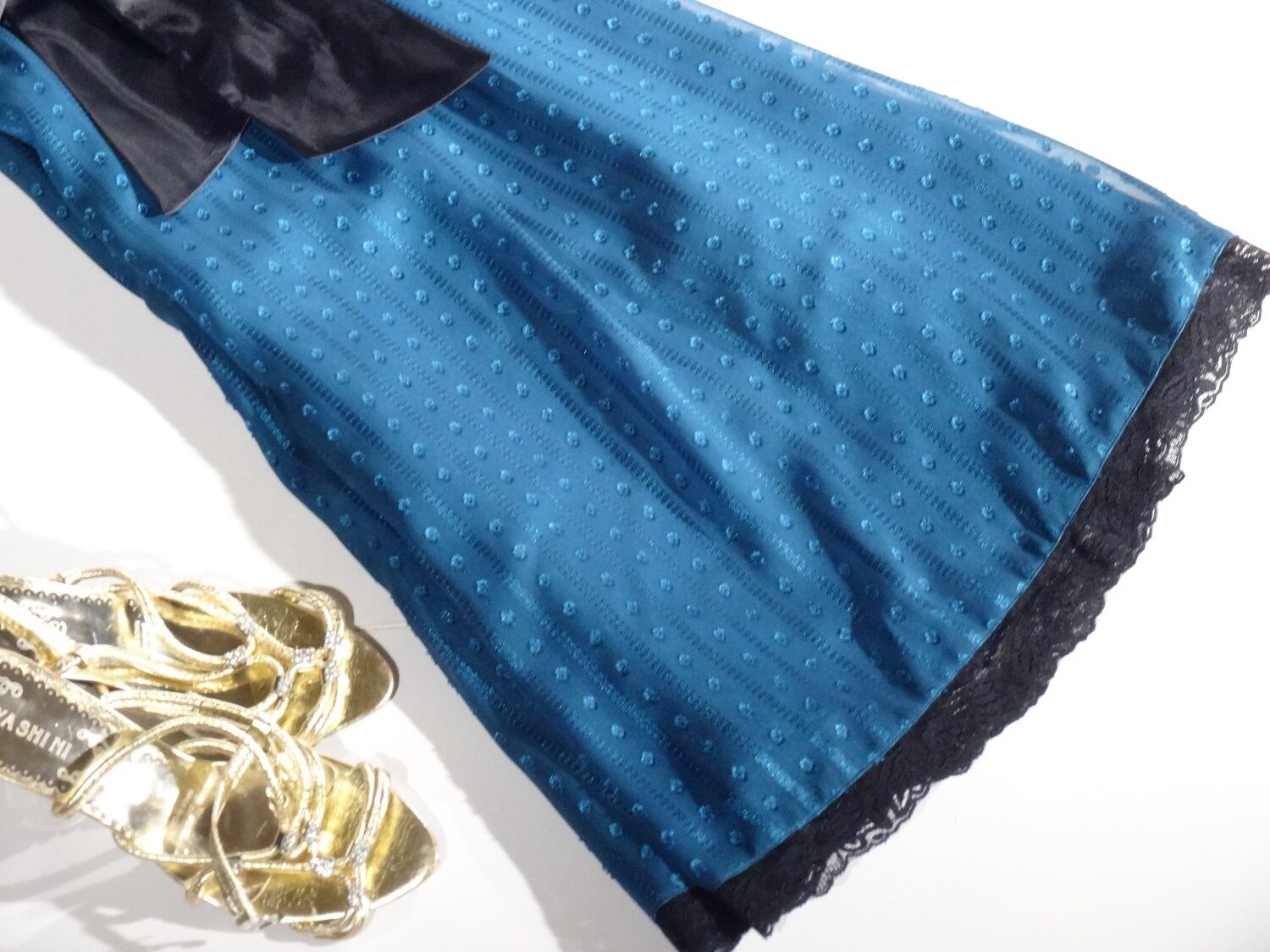 光る金刺がとてもオシャレで、しぐさを優雅に見せてくれる素敵なドレスワンピ-スです。裏地あり。