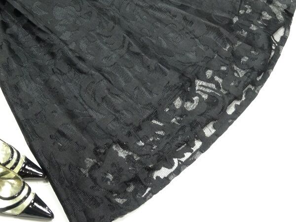 透け感が美しいレース仕様のワンピ-スです。ウエストで切り返しが入り、裾までボタニカル柄をあしらったレース仕立ての地をたっぷりと使用。ボリュームを出し華やかな印象に。袖は透け感があり、二の腕がほんのりと見え、品の良いセクシー感をかもしだしています。シックでやさしくエレガントな一着です。右脇ファスナーあり。裏地付き。