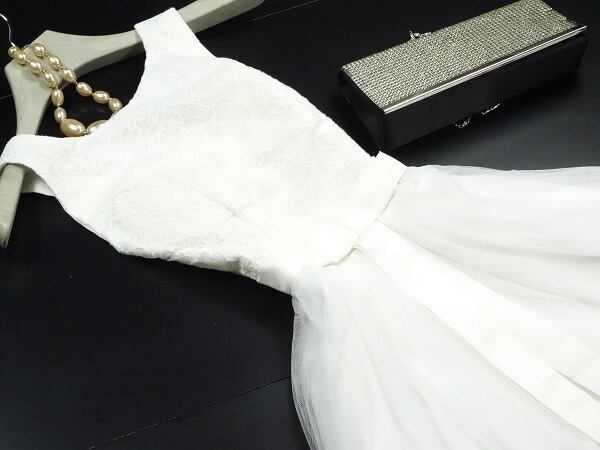 ウエストリボンがキュ-トでシフォンスカ-トがふんわりとした印象を与えてくれる魅力的なワンピ-スです。裏地あり。