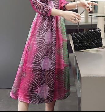 ロ-ズ系のプリントシフォンワンピ-スです。ローズを中心とした組み合わせで着心地抜群な素材でパ-ティ-はもちろんちょっとしたお出かけにもお役に立てる一着です。首部分の飾りがとても豪華で後一つボタンで留めるかぶるタイプです。裏地付。