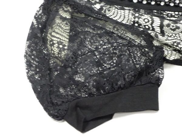 黒のホールレースが柔らかな印象を与え、シルエットが可愛らしく着こなせるワンピ-スです。特別な日の一品としてもいかがでしょうか。裏地あり。