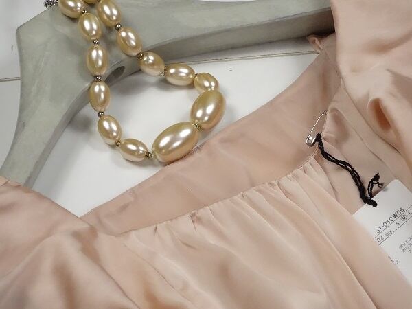 ■サイズ M(9号位) バスト:約90cm 着丈:約92cm ウエスト:約94cm~ 袖丈:約10cm 肩幅:約35cm