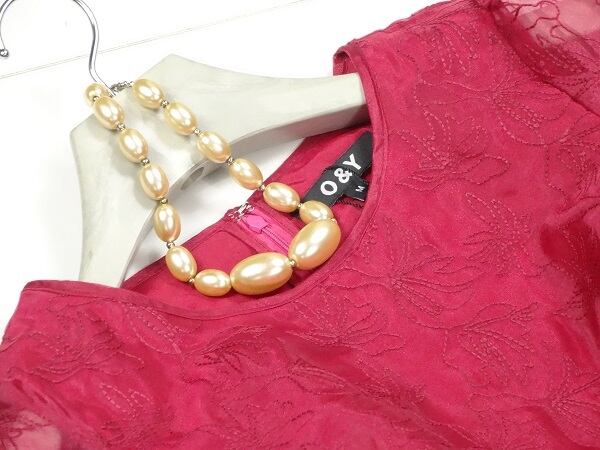 透明感のある素材使いと、繊細なボタニカル刺繍がとてもオシャレで、しぐさを優雅に見せてくれる贅沢なお洋服です。ウエストに立体モチ-フが付き、華麗な魅力を放っています。フレア-スカ-トが動くたびに揺れ気分を華やかにしあげてくれます。裏地付。ファスナ-有。