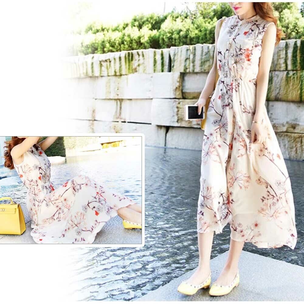 ふんわり花柄のワンピース。襟は約3cmの立襟。トップス部分フロントでボタン留め。ウエストはゴム仕様ですのでサイズ的にゆとりをもって着用頂けます。すそにかけてたっぷりとった生地がボリューム感のある フェミニンな印象になっています。フロントトップス前ボタン留め。ウエストゴム。裏地あり。