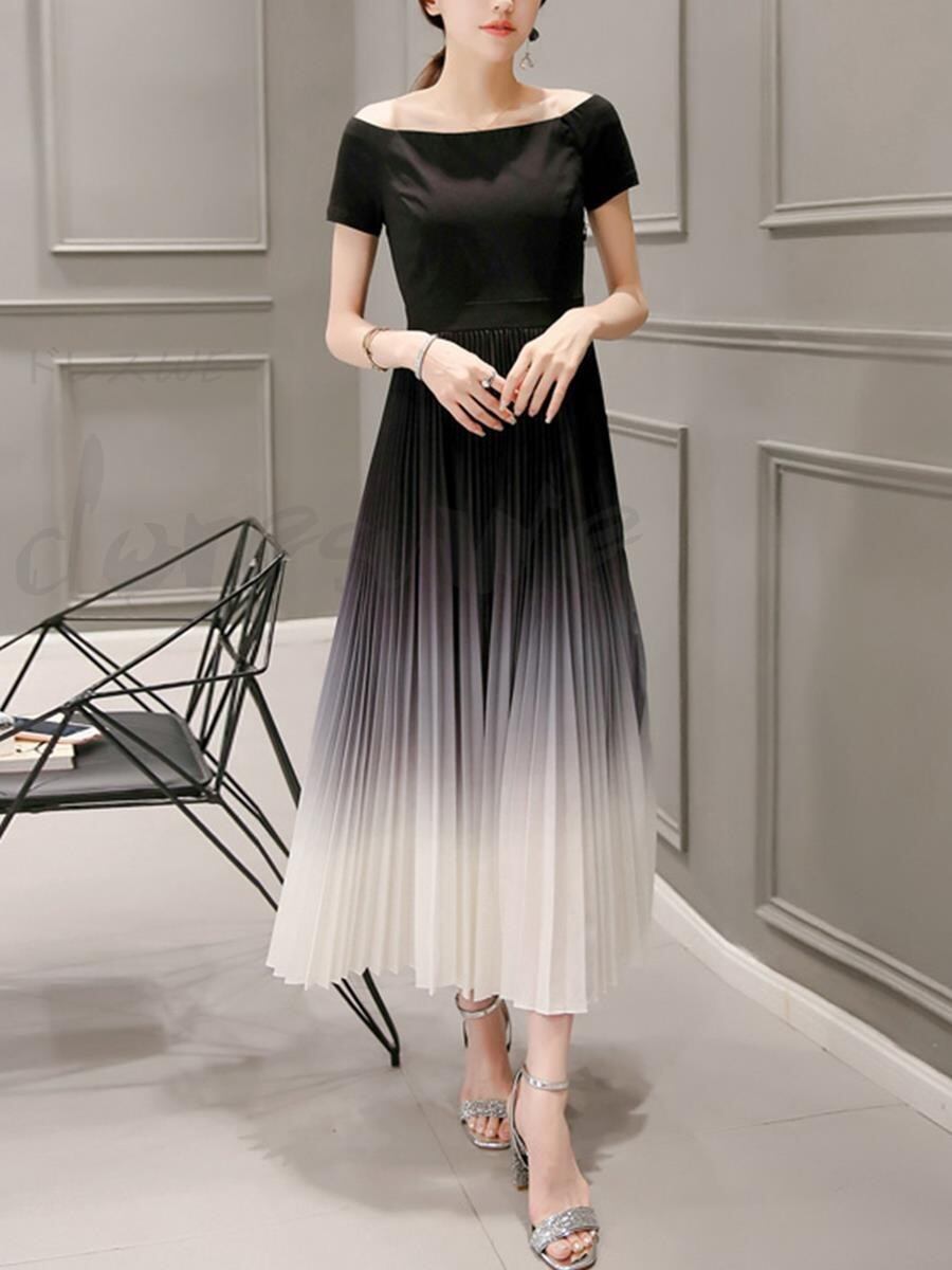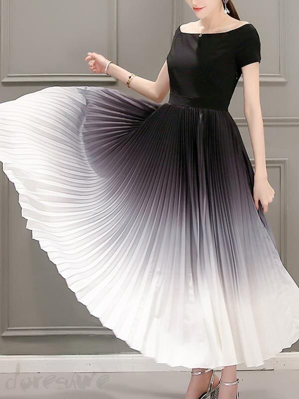 切替プリ-ツロングワンピ-スです。黒と白のグラデ-ションがとても綺麗で動くたびに揺れる裾が女性度UP!!右サイドファスナー有。裏地付。