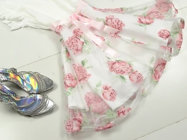 涼しげな花柄のワンピ-スです。着心地もとても良くとっても可愛いです。結婚式やパ-ティ-にお勧めの商品です。背中ファスナー。裏地あり。布ベルト付。