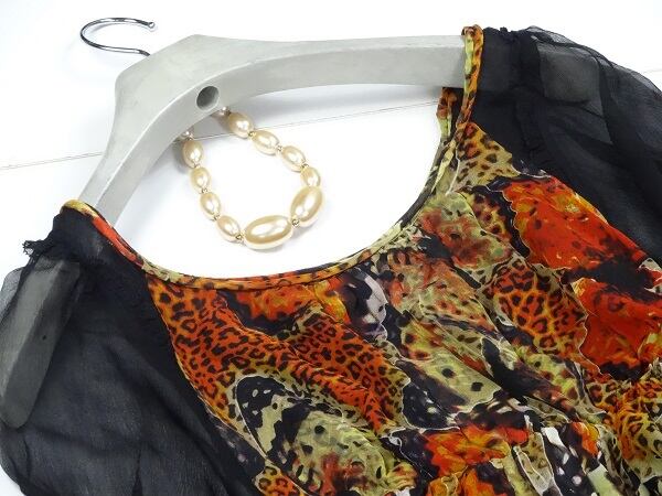 シルク100%の繊細なワンピ-スです。女性の美しさを際立たせる高級なお洋服です。シルクの肌触り軽やかさレオパ-ド柄と蝶の柄が大人の女性をイメージさせるデザインの一着です。裏地有。