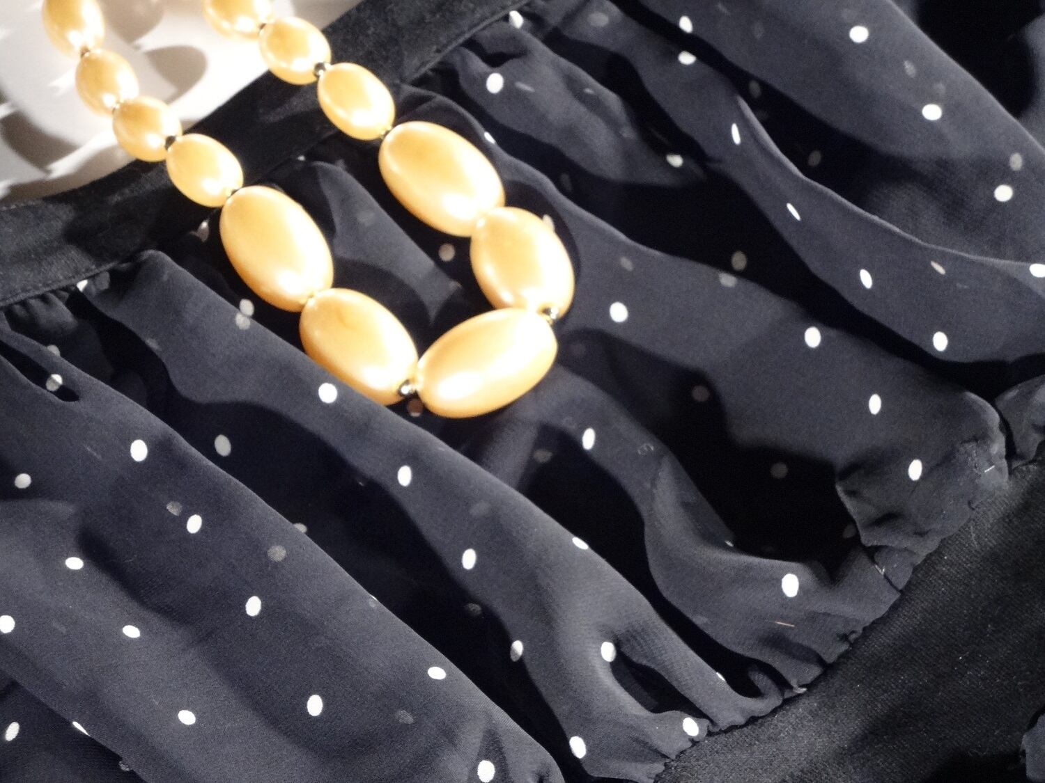 五分袖のスクエア-ネックデザインワンピ-スです。水玉模様と、裾がアラベスク調のとても上品なシフォンワンピ-スです。裏地付。