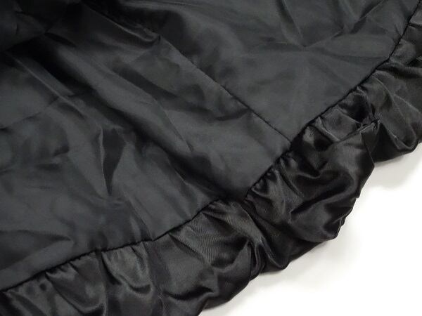 シックな黒のベアトップワンピース。トップスはウエストまでの縦タック。スカートはサテン地をたっぷりとったバルーン仕様。ふんわりとしたラインにウエストのリボンキュートなアクセントになっています。取り外し可能なストラップ付でずれ落ちる心配もなく、また背中はシャーリング仕様になっているので、サイズ的にゆったりと着用頂けます。シックとキュートさをあわせもった魅力的な一着です。ファスナーなしのかぶるタイプ。取り外し可能のストラップ付。裏地あり。