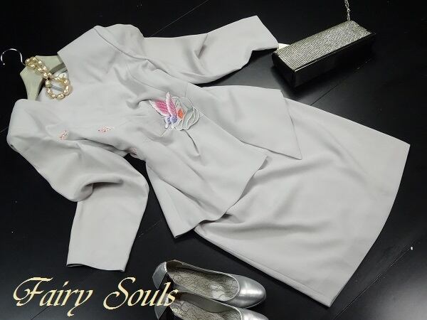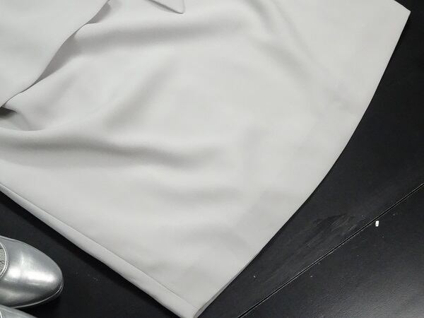 落ちついたグレ-のスカートとジャケットのセットです。上品で優しい大人の女性を表現してくれる一着です。 裏地有り。インア-付。