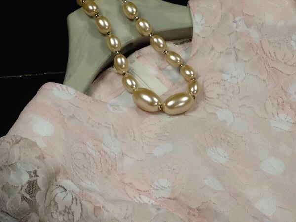 花柄の総レ-スのとてもお洒落で上品なワンピ-スです。腰から自然に広がるフレア-がとても綺麗で女性度UP間違いなしです。日本製。背中ファスナ-有。裏地付。