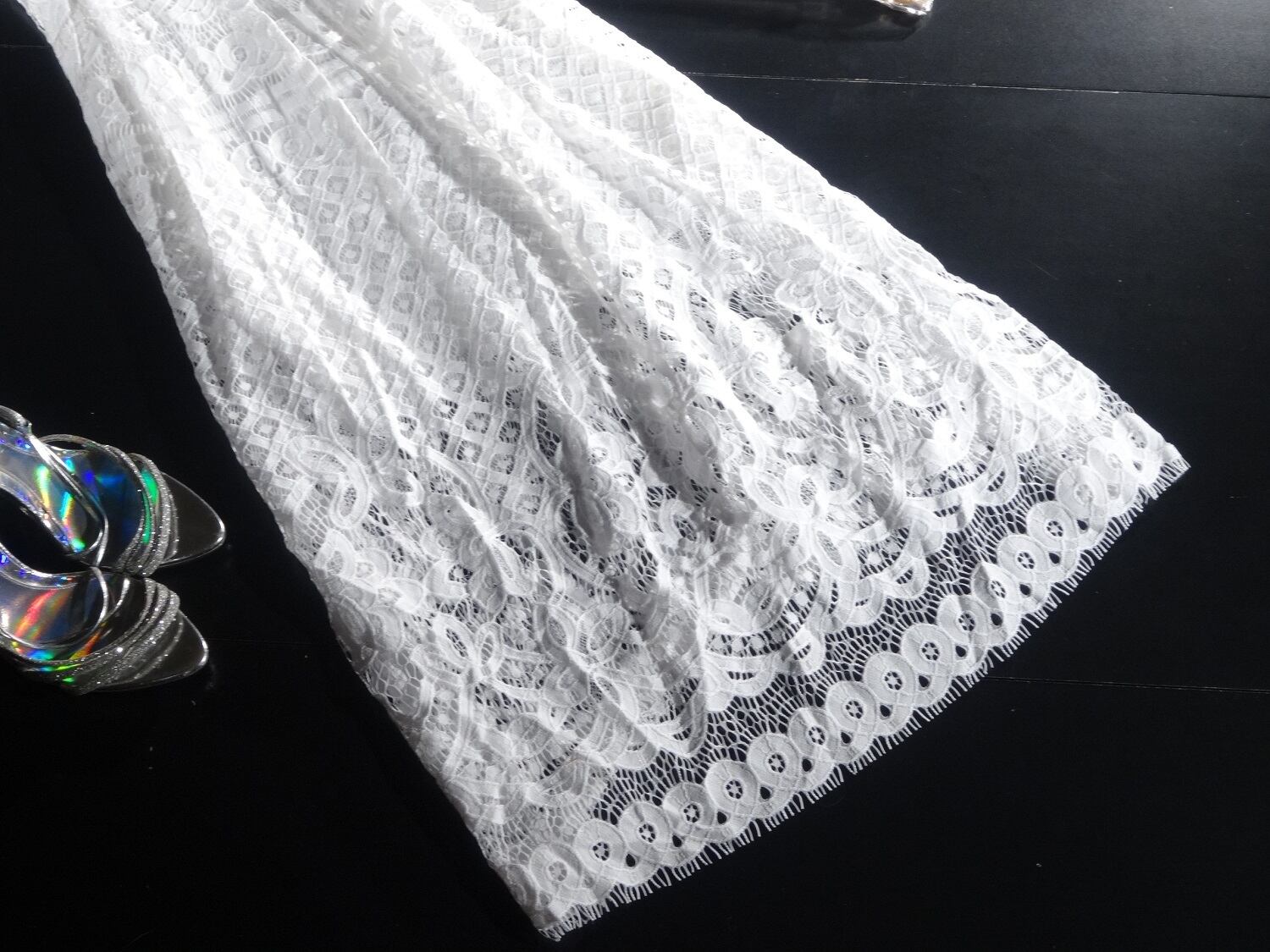 夏らしいマキシ丈ロングワンピ-スです。全体のレ-スがとてもセクシ-でお洒落度UP!!薄地の素材ですので着心地もとても良いです。ちょっとした旅行やお出かけなどに大活躍!!裏地有。背中ファスナ-有。ベルト付。