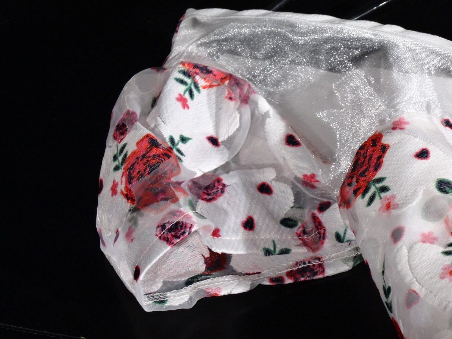 艶やかな刺繍が、お洒落感アップな一品です。可愛らしいデザインで優しい女性を表現してくれます。サッシュリボン付。ファスナ-有。裏地有。