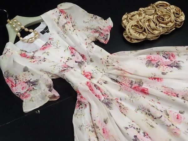 しなやかなシルク生地に絵画のような花柄がプリントされたシフォンのワンピース。ふっくらとしたパフスリーブが可愛らしさを倍増。やさしくてフェアリーな一着です。ファスナーあり。裏地つき。