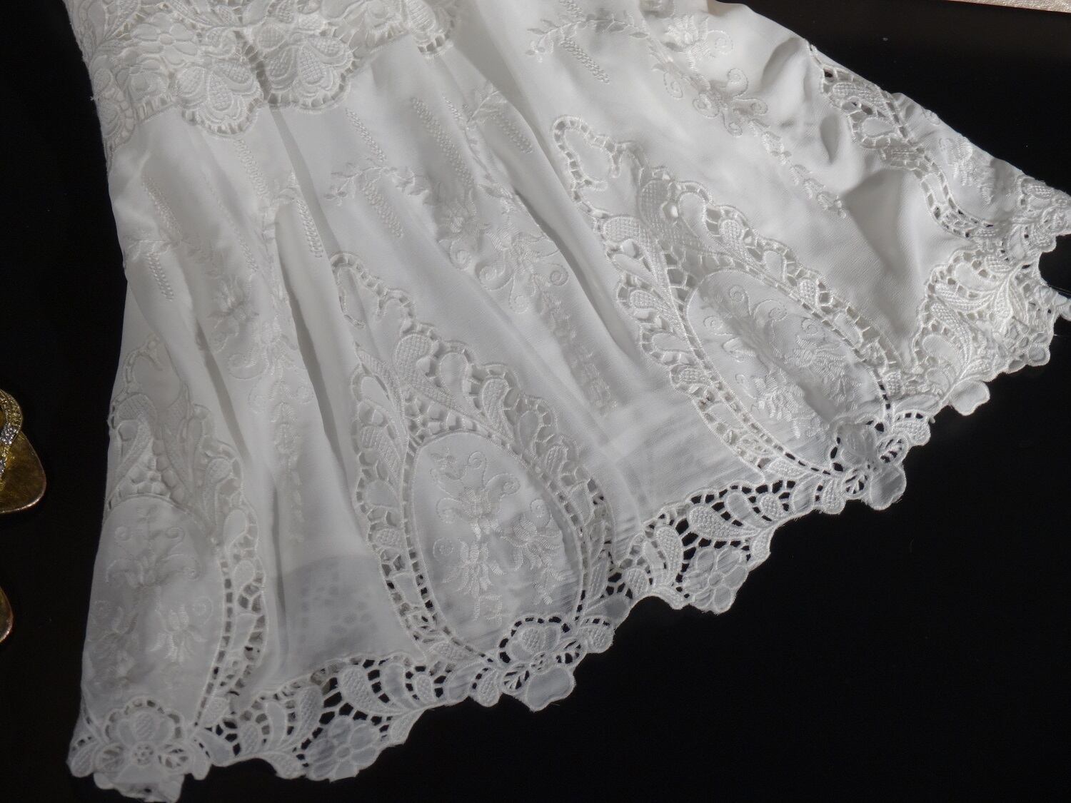 繊細な刺繍が女性らしさを醸し出しているシルク素材の着心地がとても優しいワンピース。ウエストの切り替えデザインでツーピース風に見えるユニークなデザインです。フォーマルはもちろん、どんなシーンでも活躍してくれる一着です。左脇ファスナー。裏地あり。