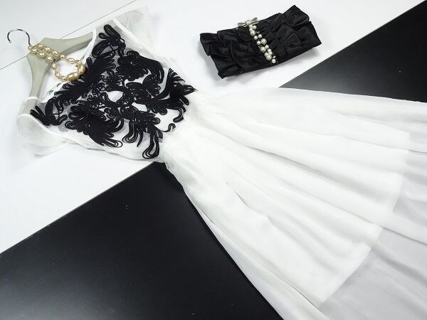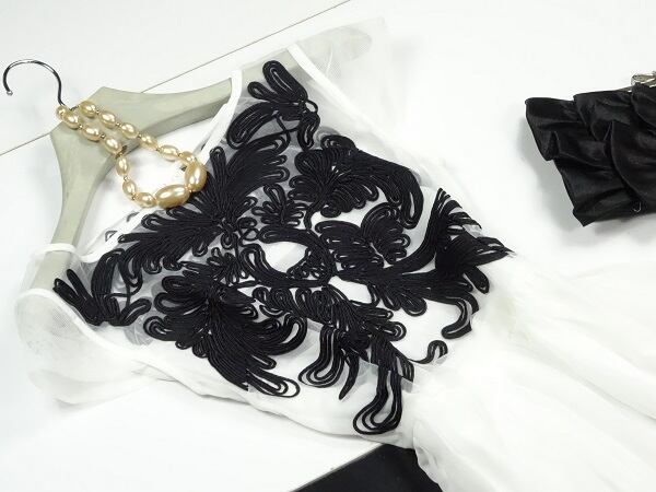 黒の立体花刺繍が美しいシックなロング丈のワンピース。白のしなやかな生地に、黒の刺繍が立体的にあしらわれていて、シンプルなラインに華やかさをプラスしています。スカート部分はほんのり透け感があり、足の動きを美しく魅せてくれます。普段使いはもちろん、デートやライブ、お呼ばれ、結婚式の二次会にと、様々なシーンに活躍してくれる一着です。サイドファスナー。裏地あり。