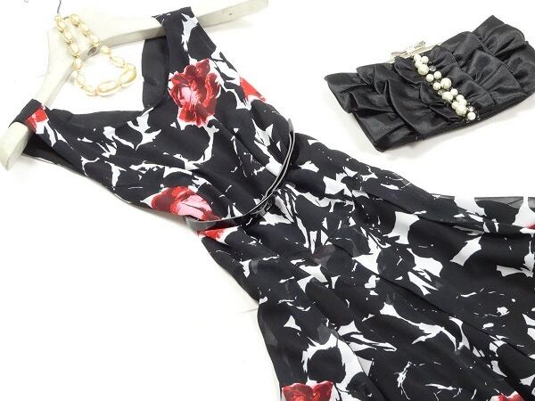 落ちついたグレー地に、大胆な黒と赤で花柄がプリントされたAラインワンピース。ゆるやかに流れるラウンドネックと、黒のベルトでキュッと引き締めたウエストは、女性本来の柔らかさや優しいイメ-ジを印象づけ、動くたびにゆったり揺れる裾は、足元を美しく魅せてくれます。ベルト付。背中ファスナー。裏地あり。