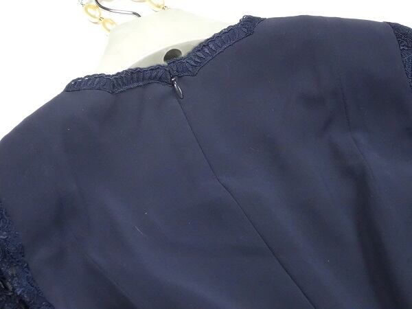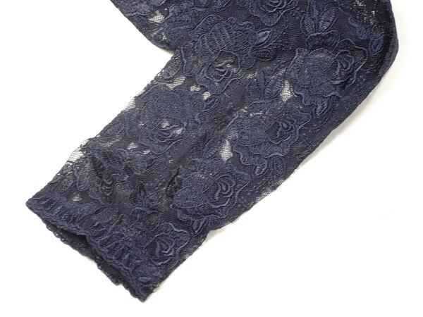 ネイビ-の刺繍が美しいシックなロング丈のワンピース。スカート部分はシフォンの二重構造になっていて、動きを美しく魅せてくれます。普段使いはもちろん、デートやライブ、お呼ばれ、結婚式の二次会にと、様々なシーンに活躍してくれる一着です。後ファスナー有。裏地あり。日本製。